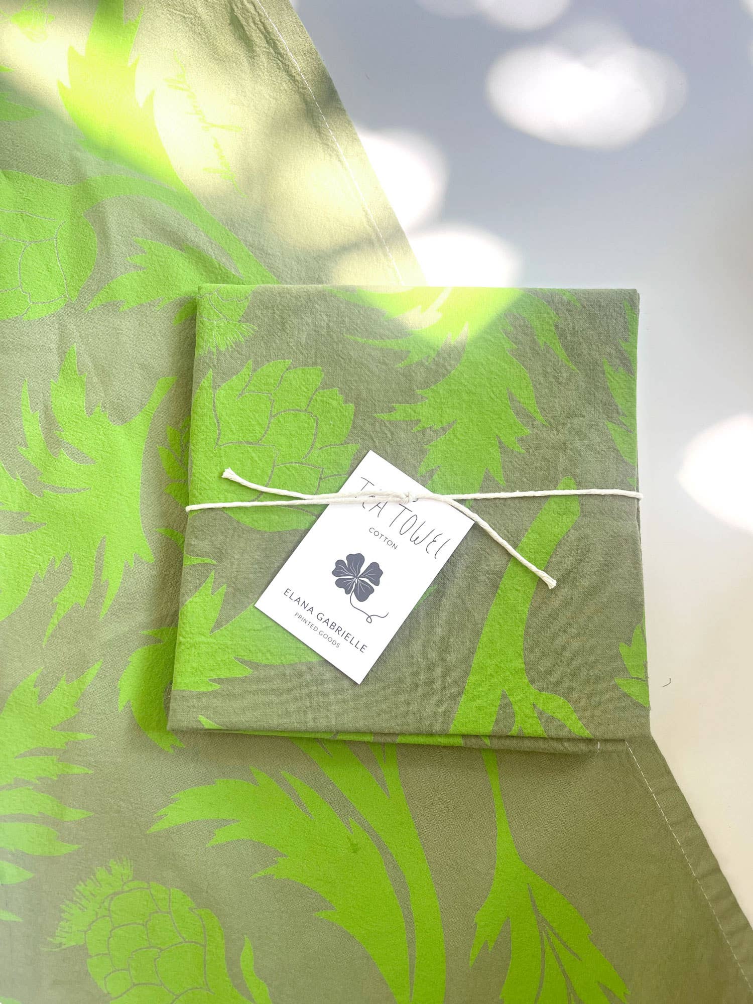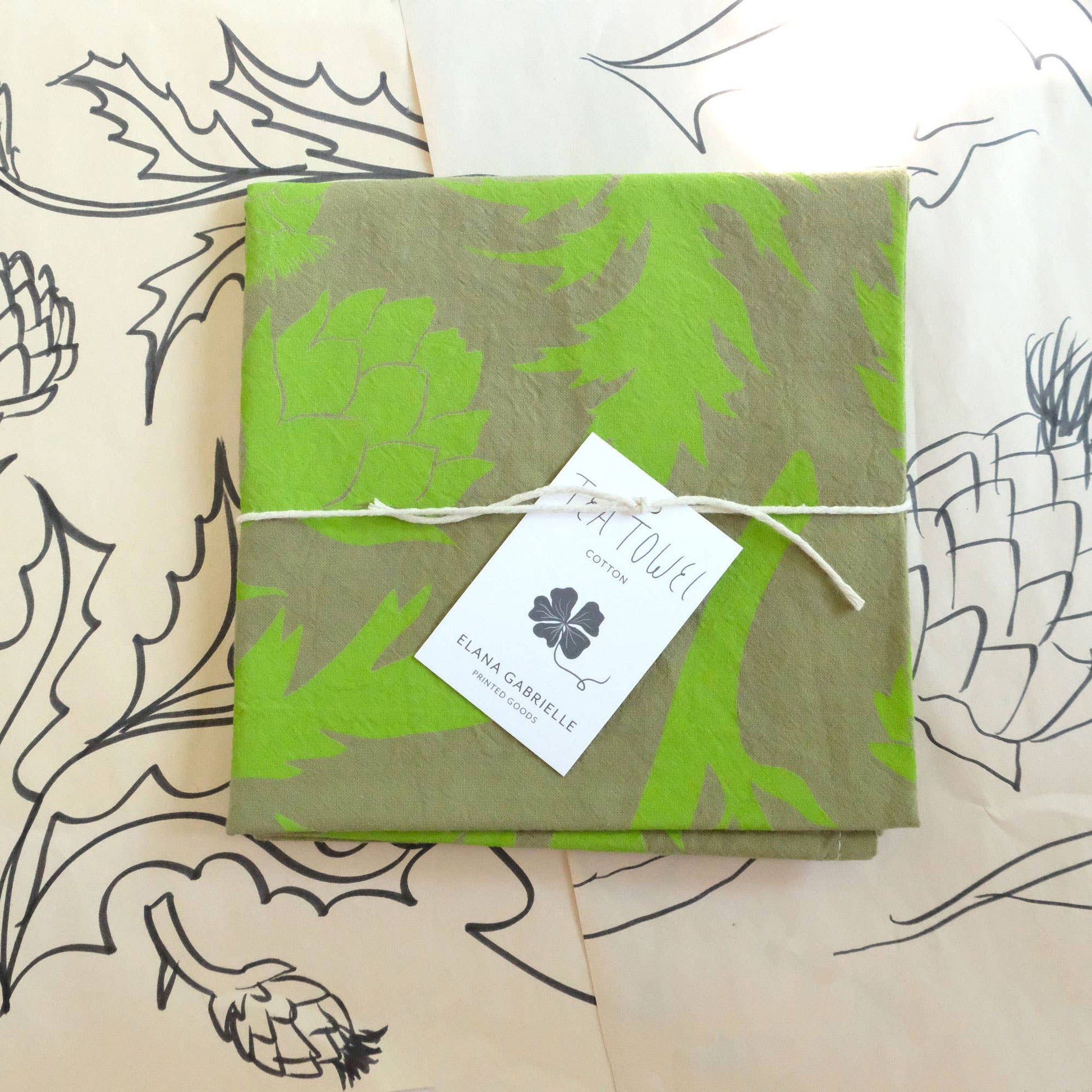 These tea towels were created as multifunctional textiles for both inside and outside the kitchen. Made with 100% cotton and screen-printed with water-based ink, they are safe to use around food and make wonderful kitchen cooking companions.