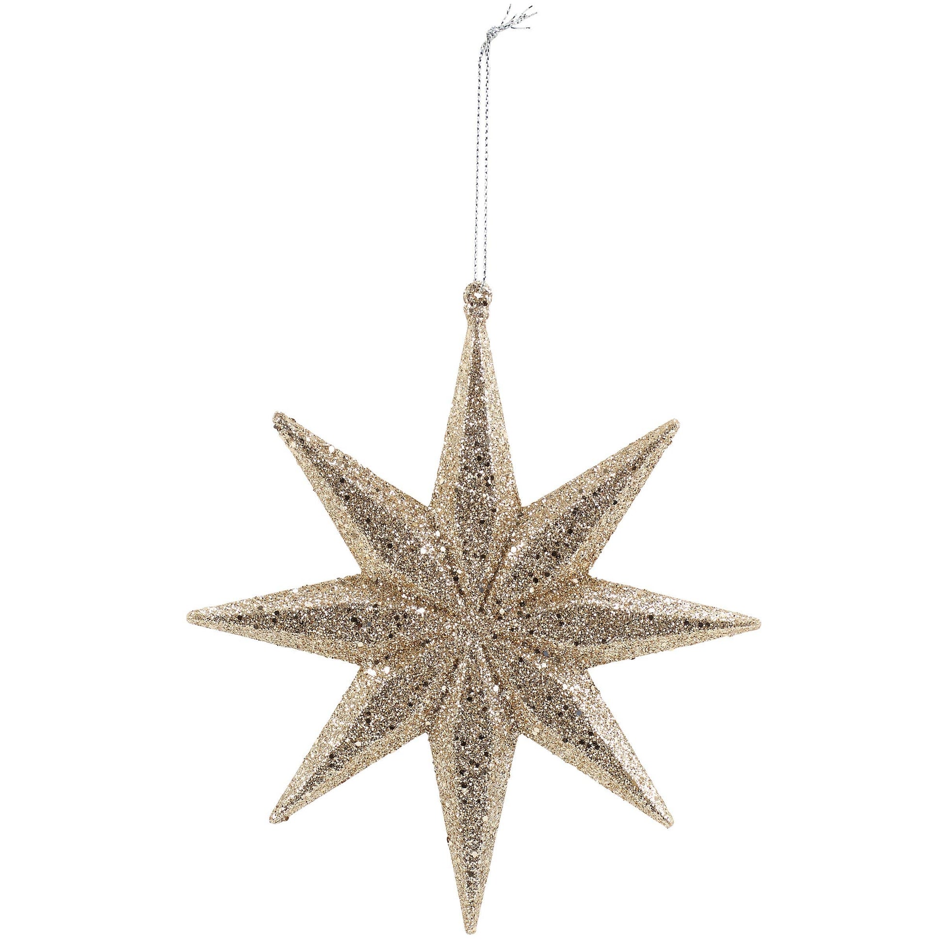 A decorative ornament from our Christmas Collection displaying a vintage Christmas star design with glitter finish. Our Christmas Star ornament is easy to hang for display via attached silver string hanger. A vintage Christmas home accent perfect for a Christmas tree or for seasonal decorating.