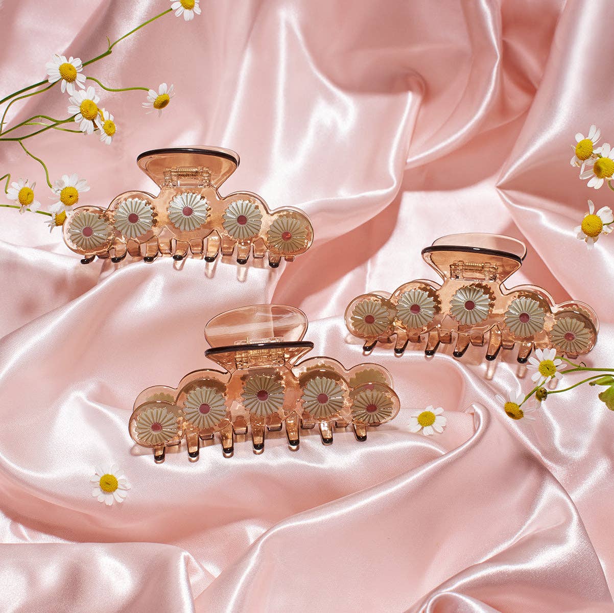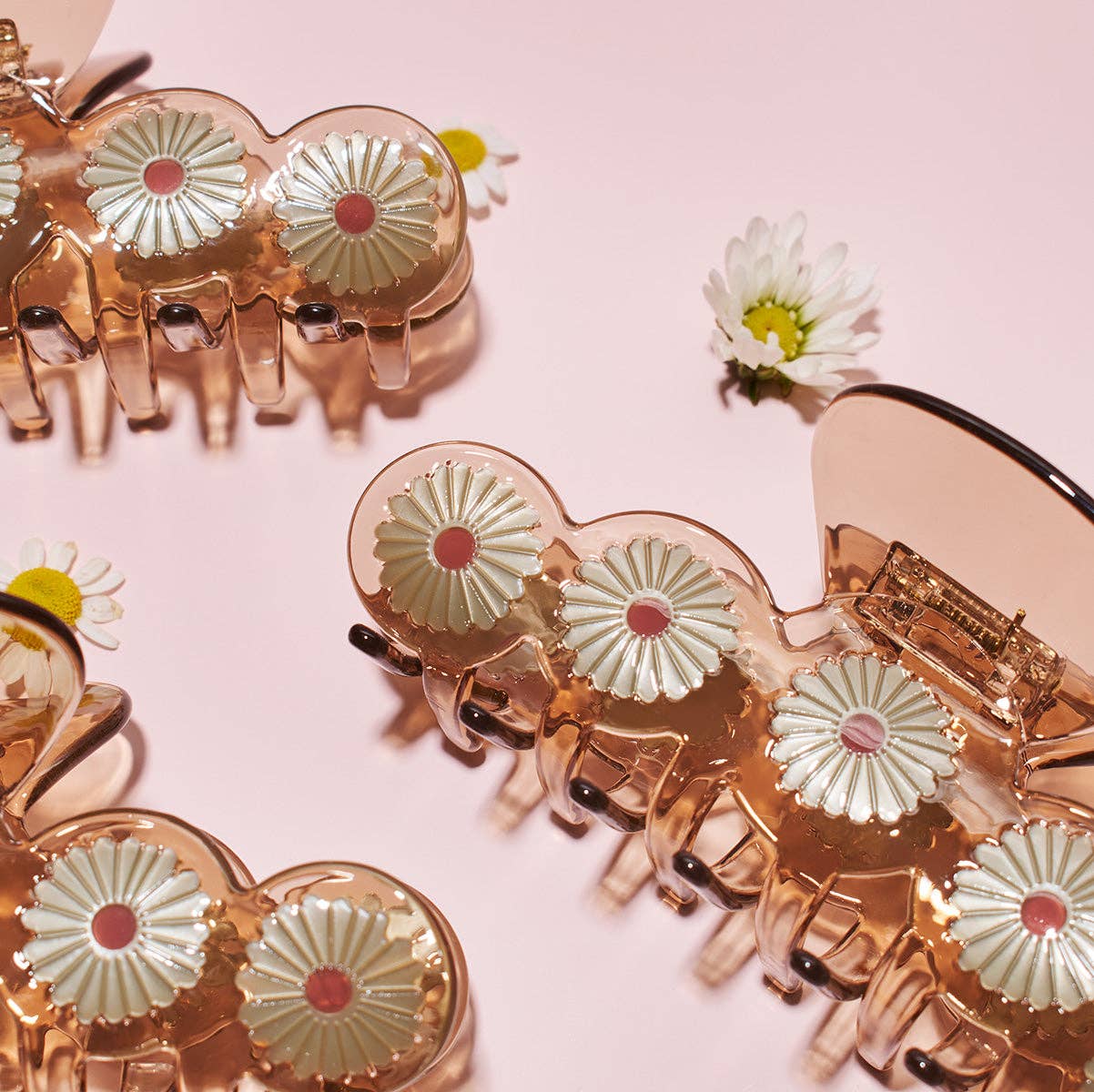 Eclipta Daisy Flower XL Hair Claw in Clear Brown Acetate