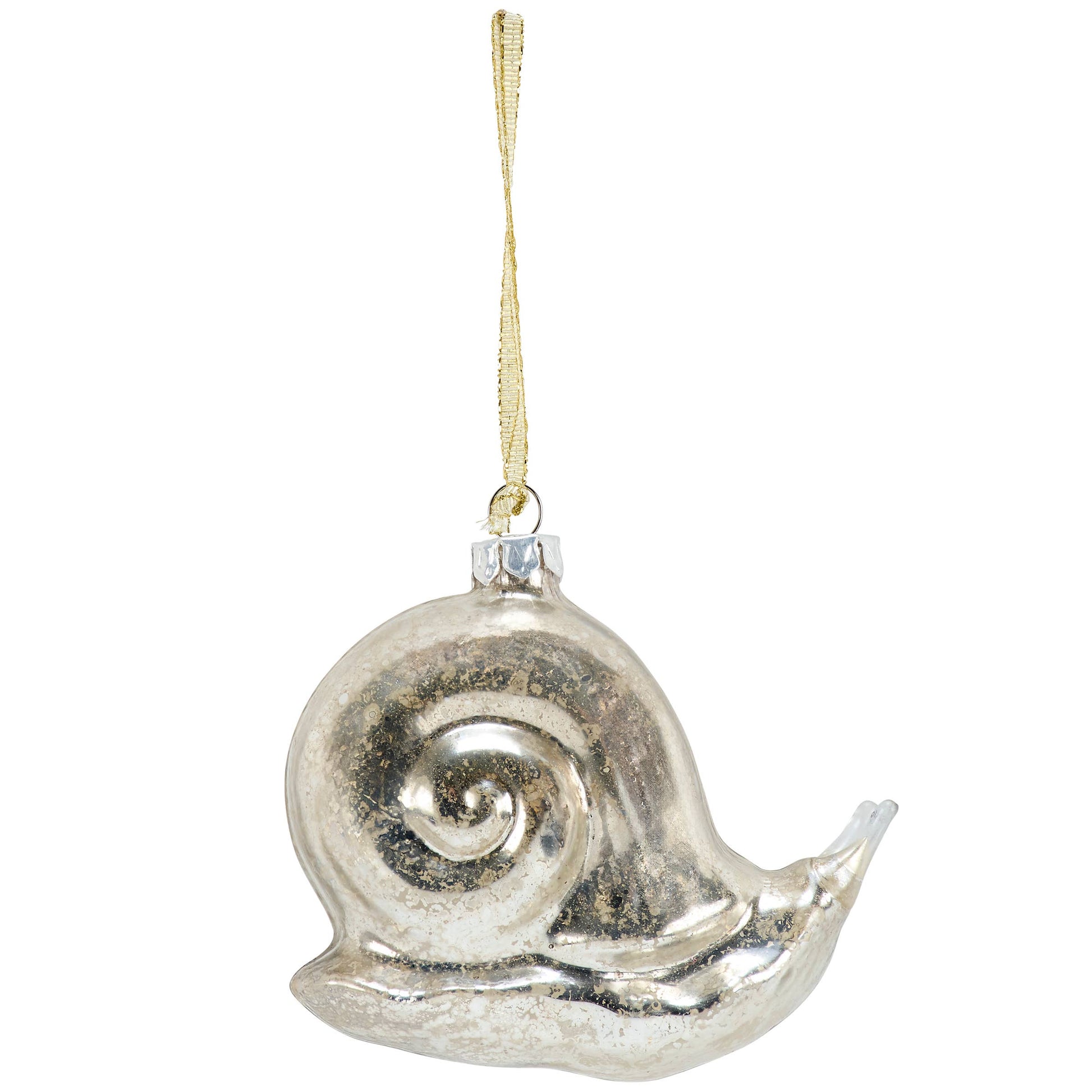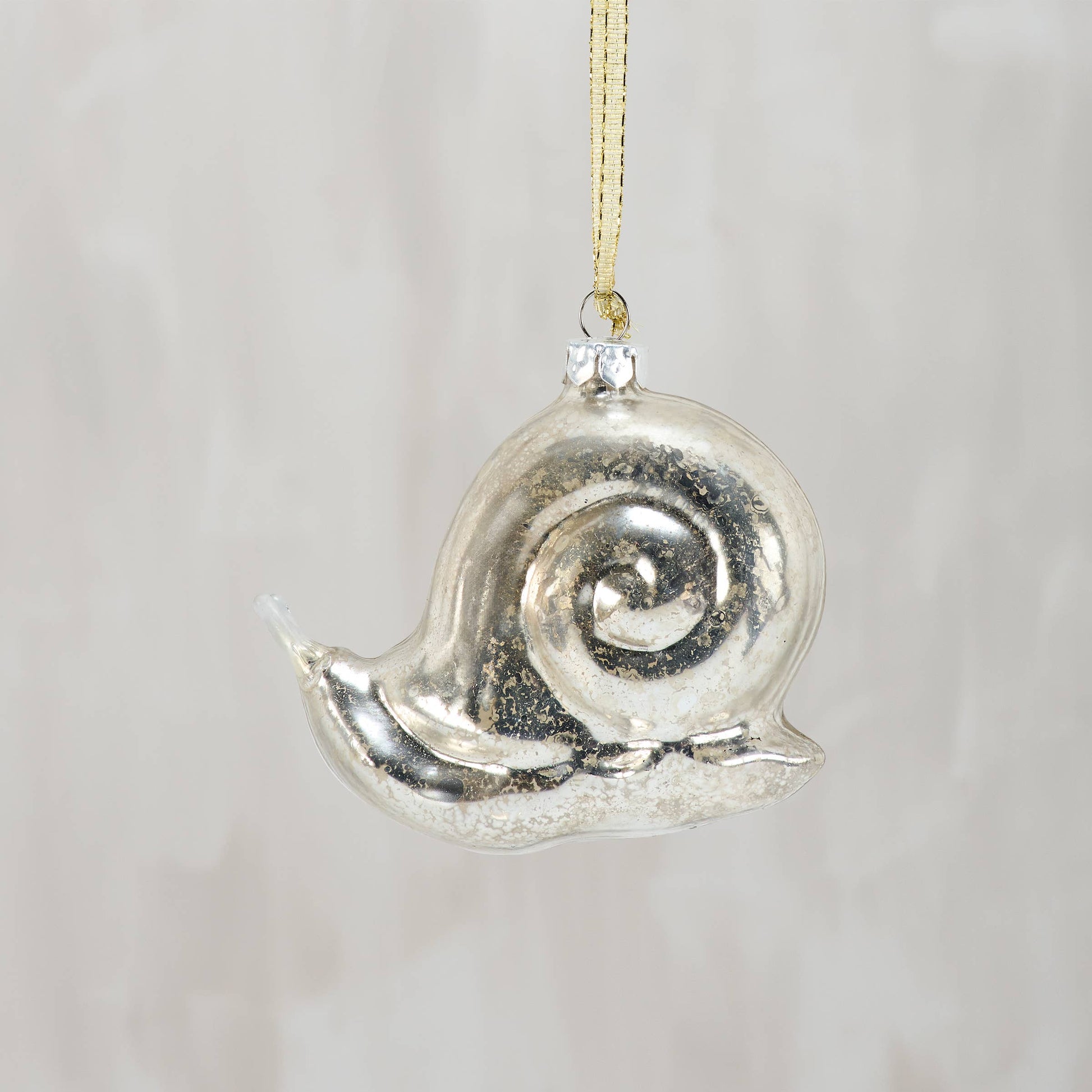 A glass ornament from our Cottagecore Collection displaying a nature inspired design of a snail with distressed details. Our glass Snail ornament is ready to hang for display via the included top loop. A vintage style gift perfect for adding personality to a Christmas tree or for everyday nature-themed displays.