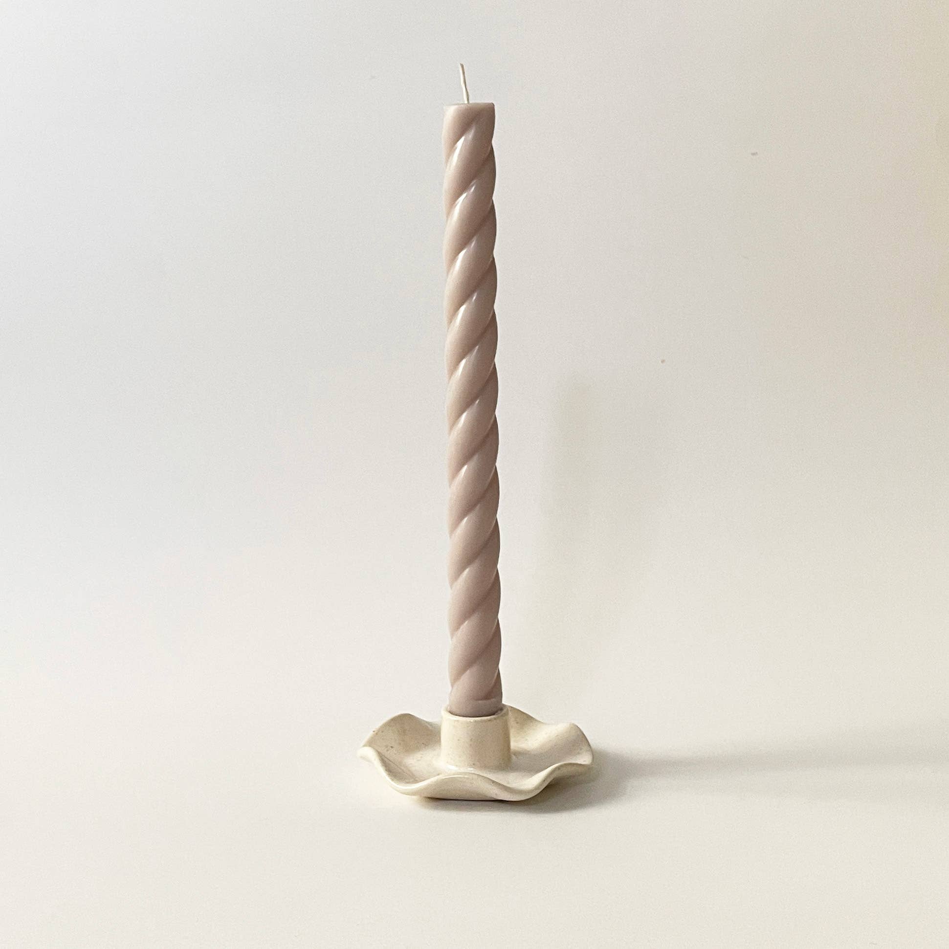 Handmade Ceramic Ruffle Taper Candle Holder - Freckle White