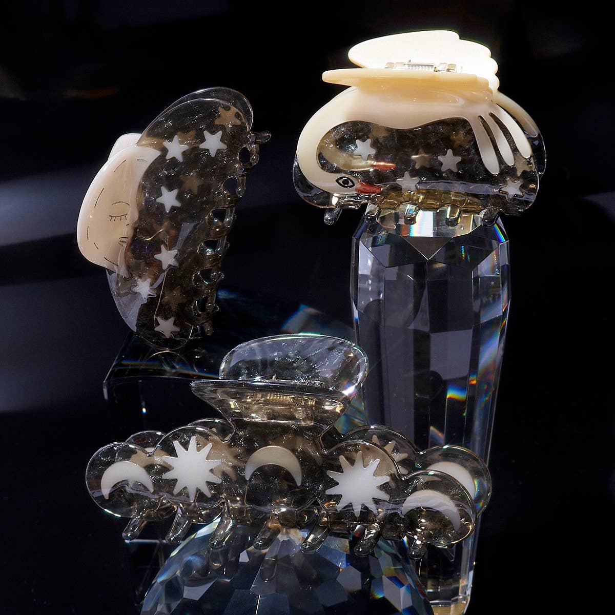 Hera Moon and Stars Silver Shimmer Acetate XL Hair Claw