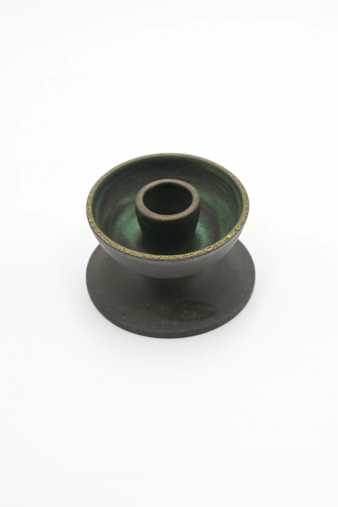 Wheel thrown stoneware candle stick holders with hand painted glaze by Cloud 9 Clay in Philadelphia.