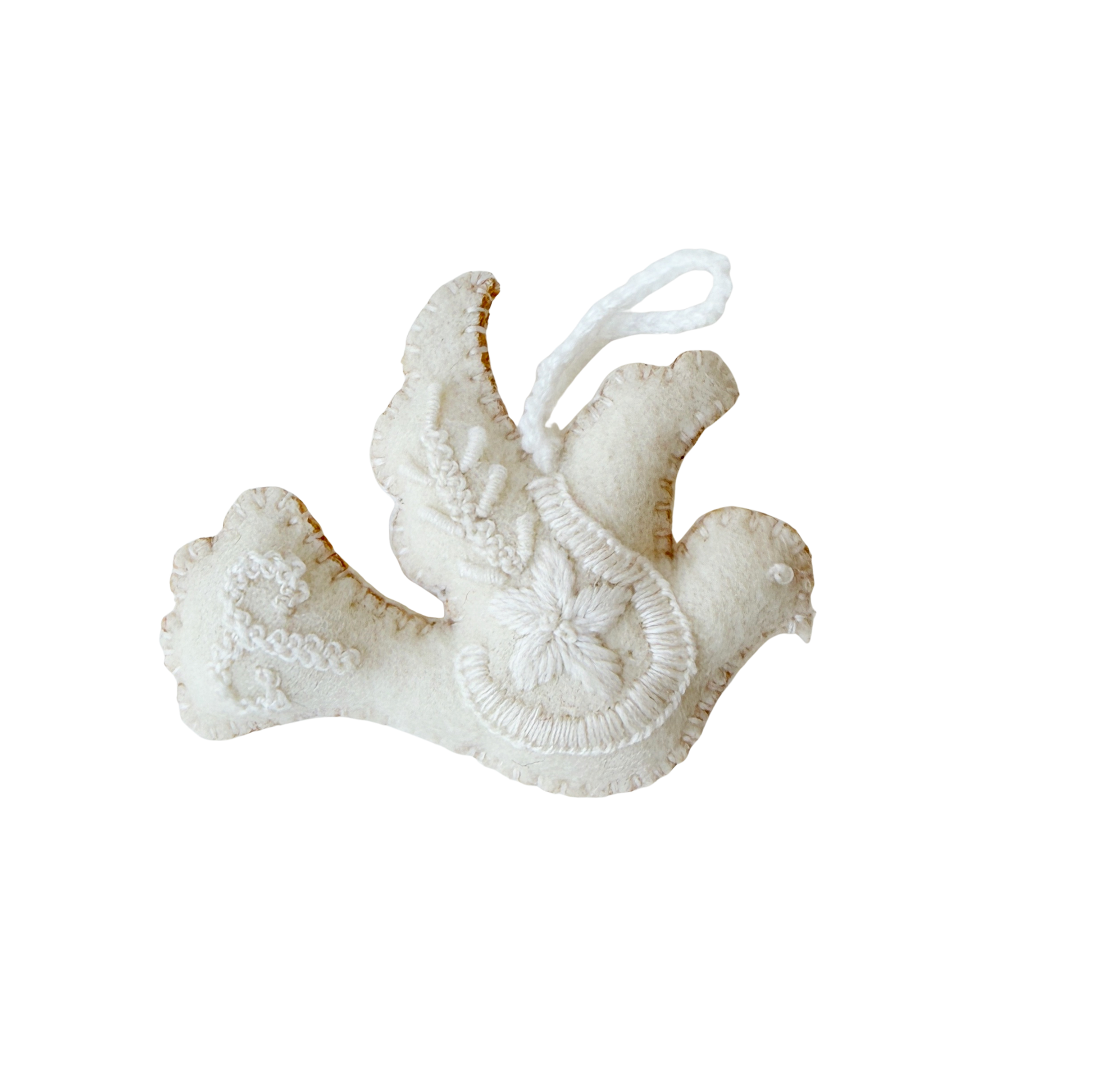 Our NEW White Dove Ornament will look elegant on your Christmas tree. Each plush dove is handmade and embroidered by artisans in Peru, South America using traditional craftsmanship. Popular for their charming designs, wool ornaments are soft, durable and excellent for holiday gifting. Perfect stocking stuffers for kids, gift toppers or whimsical Christmas decor!